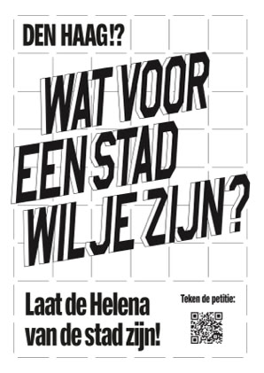 De gemeente wil het gebouw verkopen en schreef daarvoor een tender uit. Ook de huidige gebruikers dienden samen een plan in voor een culturele en maatschappelijke bestemming van het pand. De verkoopprocedure mbt De Helena is net ingetrokken nadat was geconstateerd dat een hotelfunctie niet mag. Er waren 2 aanmeldingen. Een commercieel plan van een Rotterdamse partij met hotelfunctie en een Haags maatschappelijk plan met veel draagvlak in de stad. In plaats van aan ons te gunnen is er een nieuwe procedure in de maak. Het mooie is, er hóeft helemaal niet opnieuw te worden getenderd: het Didam arrest maakt het de gemeente mogelijk om het pand 1-op-1 te verkopen aan de huidige gebruikers.